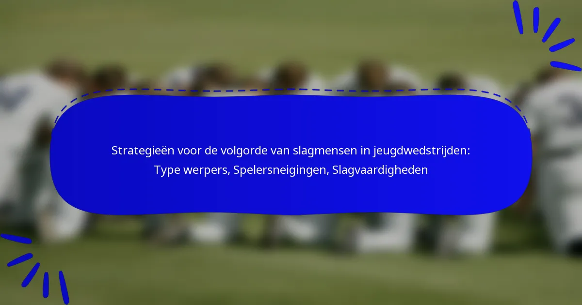 Strategieën voor de volgorde van de slaglijn bij jeugdteams zijn afhankelijk van het begrijpen van de verschillende soorten pitchers, de neigingen van spelers en hun slaghabilidades om het scoringspotentieel te optimaliseren. Door deze elementen te analyseren, kunnen coaches line-ups creëren die de zwaktes van de tegenstander uitbuiten terwijl ze de sterke punten van hun eigen team maximaliseren. Verschillende soorten pitchers hebben een aanzienlijke invloed op de slaghstrategieën en bieden unieke uitdagingen en kansen die teams moeten navigeren voor betere prestaties.