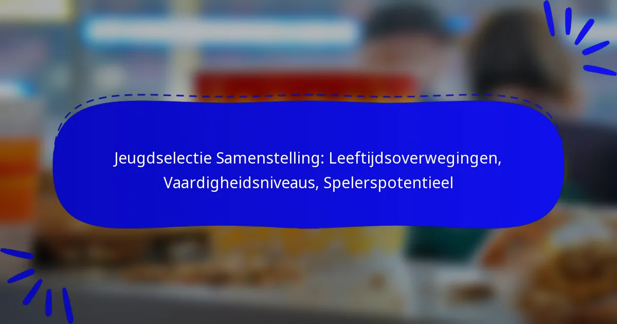 Het samenstellen van een jeugdteam vereist zorgvuldige overweging van leeftijd, vaardigheidsniveaus en het potentieel van spelers om zowel de individuele als de teamontwikkeling te optimaliseren. Leeftijd beïnvloedt niet alleen de fysieke en mentale groei van spelers, maar ook de dynamiek binnen het team. Door vaardigheidsniveaus te beoordelen en training aan te passen aan de unieke behoeften van elke speler, kunnen coaches een omgeving creëren die talent koestert en prestaties maximaliseert.